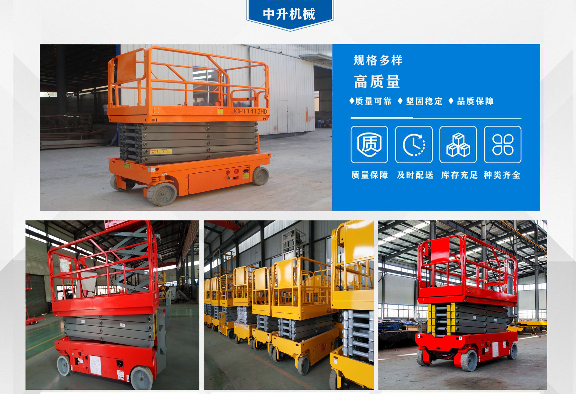 濟南中升機械制造有限公司主營自行式升降機,自行走升降機,自行式升降平臺,移動升降平臺,移動式升降平臺等產品,產品廣泛用于廠房維護、工業安裝、設備檢修、物業管理、倉庫、航空、機場、港口、車站、加油站、體育場、展覽館等多種行業和場所, 公司設備精良、工藝合理、檢測手段齊全,技術力量充足,公司創(chuàng)立伊始即本著“專注、專心”的經營理念,依托技術團隊優(yōu)勢和設備硬件保障,全力打造良心的升降平臺企業。 我公司始終以“品質為本,服務至上”作為企業宗旨。只要你訂購了我公司的產品,無論你身處何方,我們都會及時派出技術人員為你服務!...